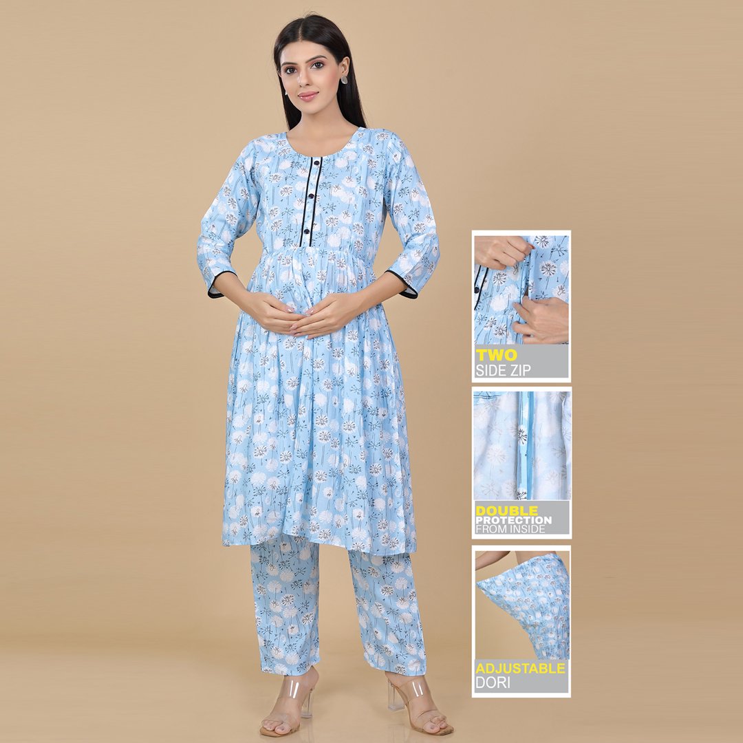 Sky Blue Feeding & Maternity Dress (Top&Bottom)