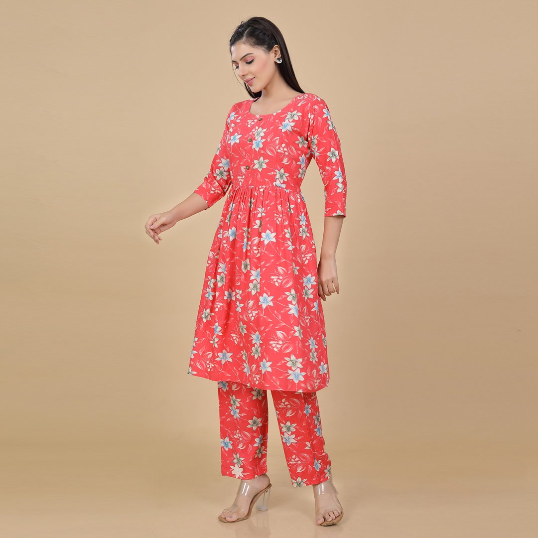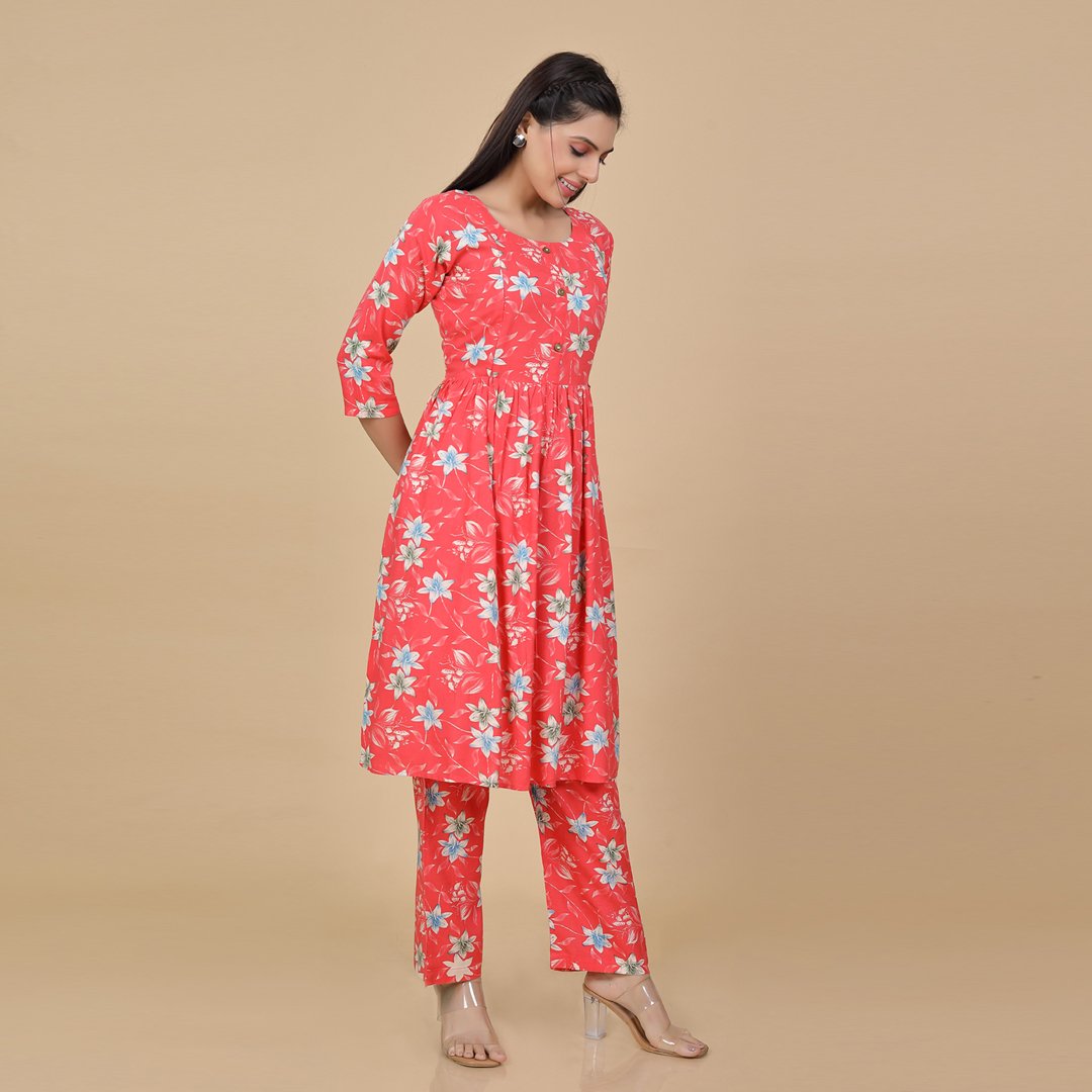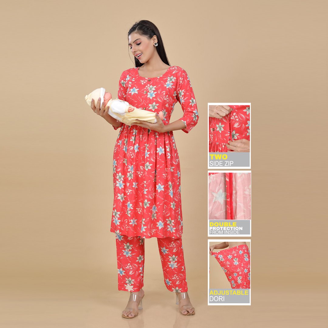 Tomato Red Feeding & Maternity Dress (Top&Bottom)